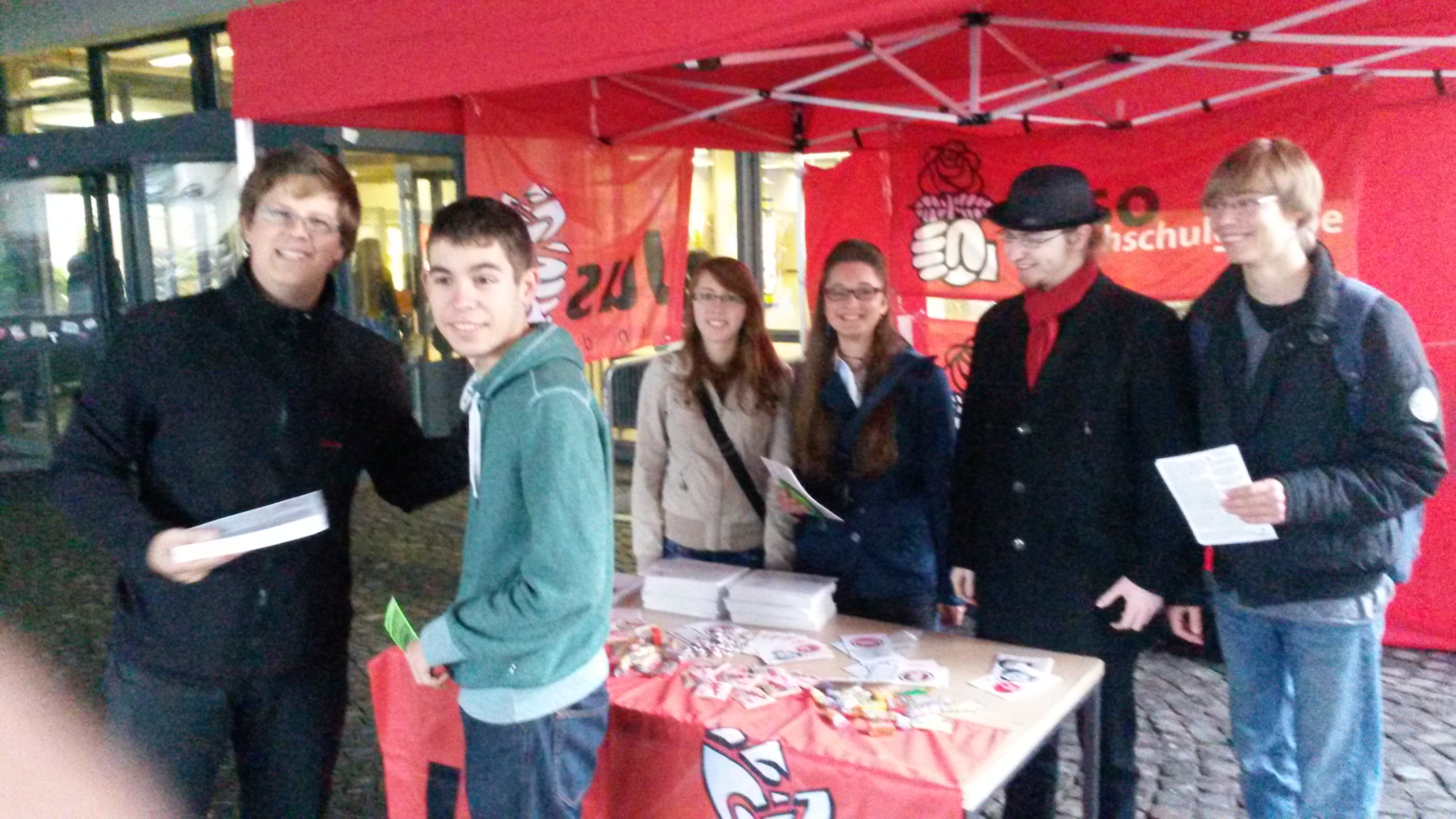 heute startet das Wintersemester 2014/15 an der RUB und es geht wieder los mit dem all morgendlichen Gedrängel in der U35 und den mal mehr und mal weniger guten Seminaren und Vorlesungen – der ganz normale Wahnsinn eben! Um die Erstsemester an ihrem ersten Tag an der RUB gebührend in Empfang zu nehmen sind wir heute vor dem Audimax mit einem eigenen Begrüßungsstand vertreten. Darüber hinaus verteilen unsere AStA-Referent*innen natürlich wieder die altbekannten AStA-Ersti-Beutel, welche auch in diesem Semester wieder die eine oder andere Überraschung bereithalten.
